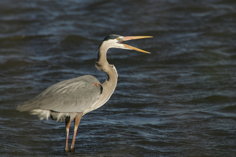 The great blue heron can be found in marshes, rivers, lakes, salt water shores and ponds.