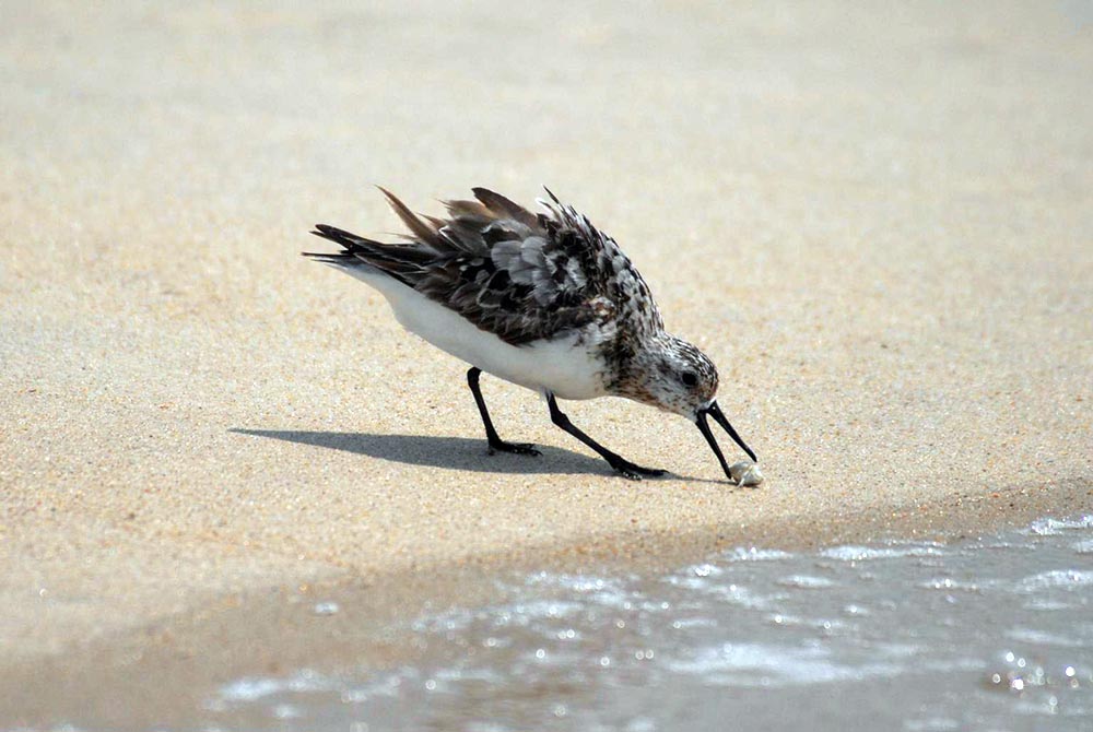 The sanderling eats crustaceans, mollusks, marine worms and insects.