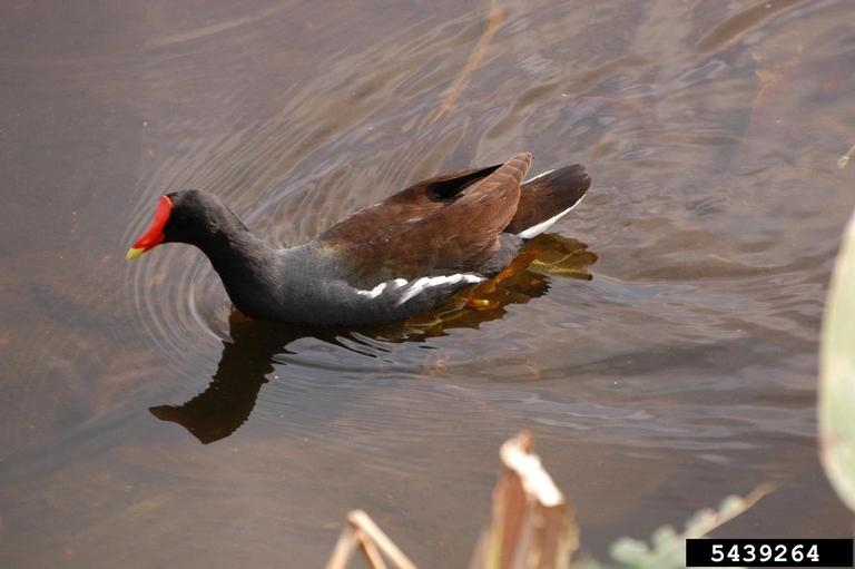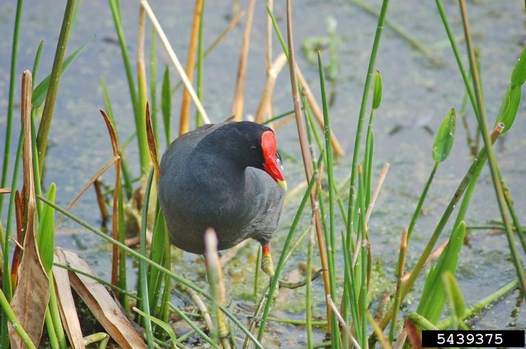 The common moorhen lives in freshwater and brackish marshes, lakes, canals, and ponds with cattails and other aquatic vegetation.