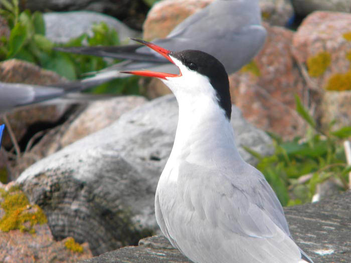 Common TernIn 1997, the Audubon Society of New Hampshire and the NH Fish and Game Department began creating safe nesting sites for the common tern on White and Seavey Islands. The safe nesting sites use decoys and other non-lethal tools to drive away sea gulls! In the first year of the project six pairs nested. Today there are over 2,500 nesting pairs of common terns on the Isles of Shoals. The safe nesting place has also attracted some roseate tern and arctic tern pairs!