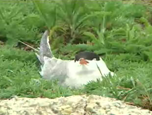 Common TernThe common tern nests in colonies. The male selects a breeding territory and protects it. He courts a female by bringing her a fish! The male mates with only one female. The nest is a pile of dead vegetation placed on sandy or rocky beaches or on rocky ground. The female lays 1-4 eggs, and the male and the female incubate the eggs for 20-26 days. Both parents care for and feed the chicks and aggressively protect them from predators by diving at intruders and striking them with their bills The chicks fledge when they are 27-30 days old. The common tern mates when it is three years old.