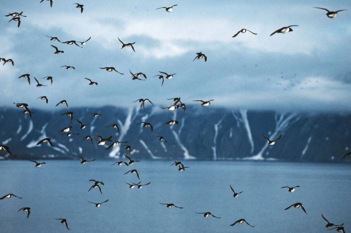 DovekieIn the winter, dovekies stay at the southern edge of the arctic pack ice. With warming global weather, the pack ice has been retreating and the dovekies are following it.