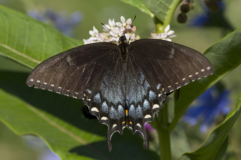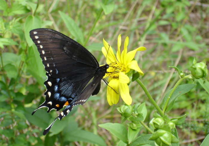 Eastern Tiger SwallowtailFemales can range in color from the yellow of the male to an almost solid bluish-black. The black form the the eastern tiger swallowtail is most common in the southern part of its range in areas also inhabited by the pipevine swallowtail, a butterfly that has an unpleasant taste. The black form of the eastern tiger swallow tail may be an example of deceptive coloration using mimicry.