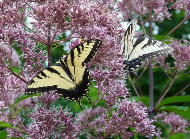 The eastern tiger swallowtail lives in deciduous woods along streams, rivers, and swamps.