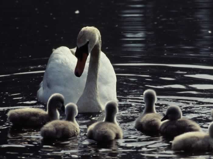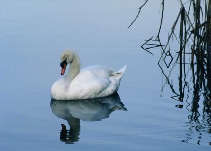 The mute swan is found on shallow ponds, estuaries, bogs, lakes, and sheltered bays.