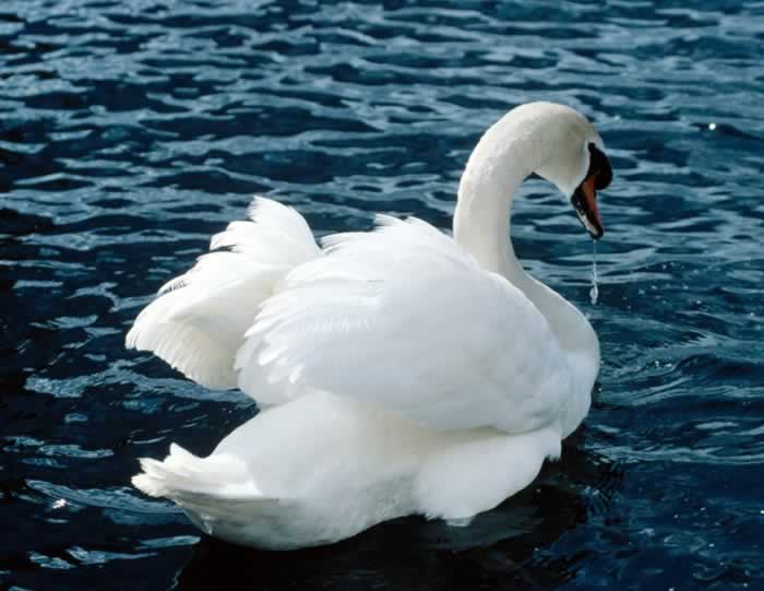 Mute SwanThe mute swan can fly at speed of up to 50 miles per hour. In North America, the mute swan does not migrate, but it may move short distances from frozen water to open water. When the mute swan swims, it curves its neck into an S-shape and points its bill down. Other swan species, like the tundra swan, hold their necks up straight when they swim.