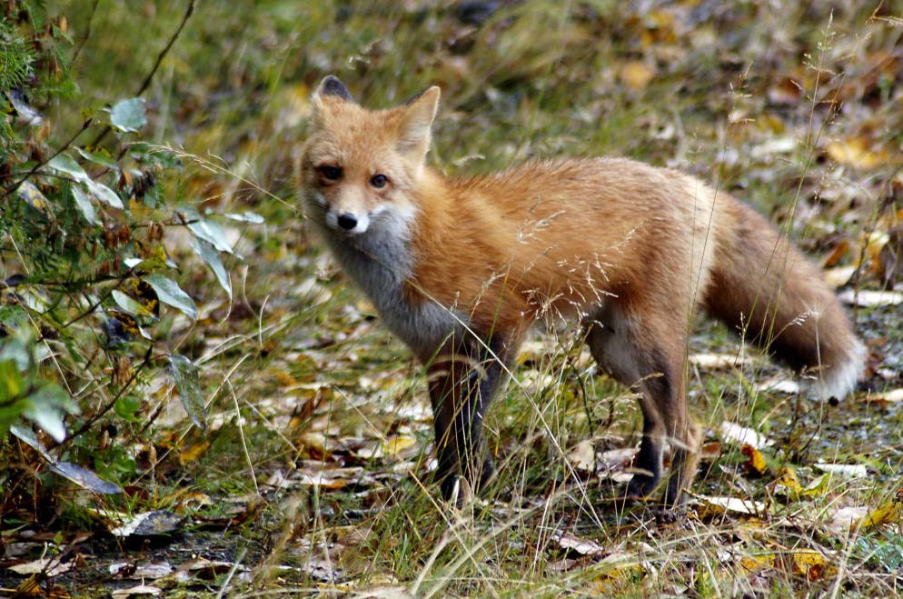 Description Range HabitatThe red fox makes its home in wooded areas, prairies and farmland. DietThe red fox eats a wide variety of foods. It is an omnivore and its diet includes fruits, berries and grasses. It also eats birds and small mammals like squirrels, rabbits and mice. A large part of the red fox's diet is made up invertebrates like crickets, caterpillars, grasshoppers, beetles and crayfish. The red fox will continue to hunt even when it is full. It stores extra food under leaves, snow or dirt. | Life Cycle BehaviorThe red fox is mostly nocturnal, although it will sometimes venture out in the day. The red fox, unlike other mammals, hears low-frequency sounds very well. It can hear small animals digging underground and will frequently dig in the dirt or snow to catch prey. The red fox stalks its prey much like a cat. It gets as close as it can and then pounces and chases its prey. Except for breeding females, the fox doesn't usually use a den. Sometimes it will sleep in the open, wrapping its bushy tail around its nose to stay warm. When it does use a den, it will usually find an abandoned rabbit or marmot den instead of making its own den.