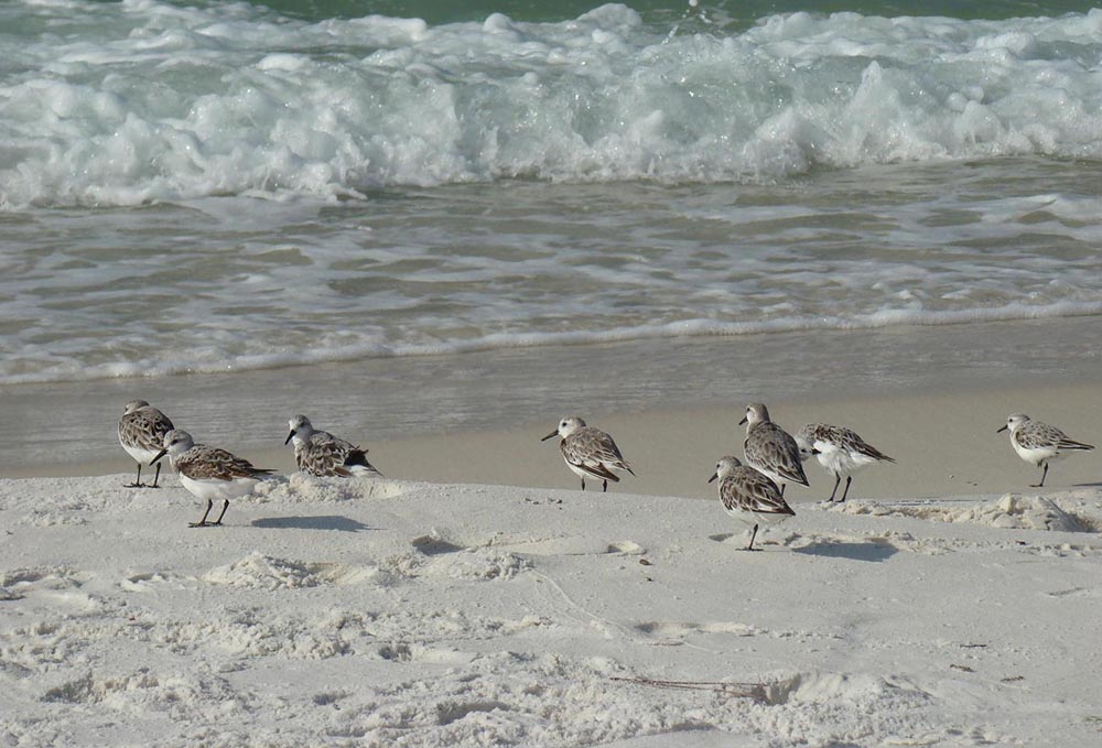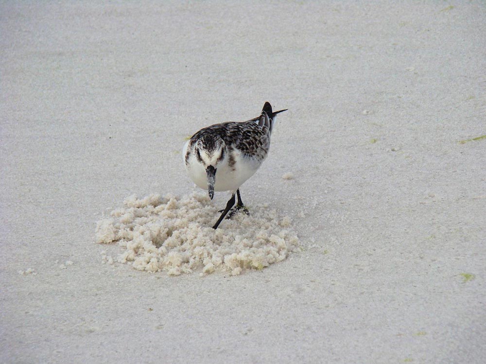 Behavior Small groups of sanderlings can often be seen on beaches scurrying after waves as they roll back out to sea. They are actually looking for tiny crustaceans and mollusks exposed by the retreating water. |