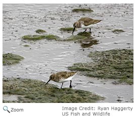 SandpiperThe sharp-tailed sandpiper can be found in grassy areas of coastal marshes and on tidal flats.