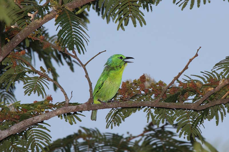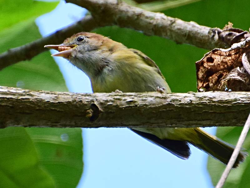 The yellow-green vireo nests in tropical areas from Mexico to Panama