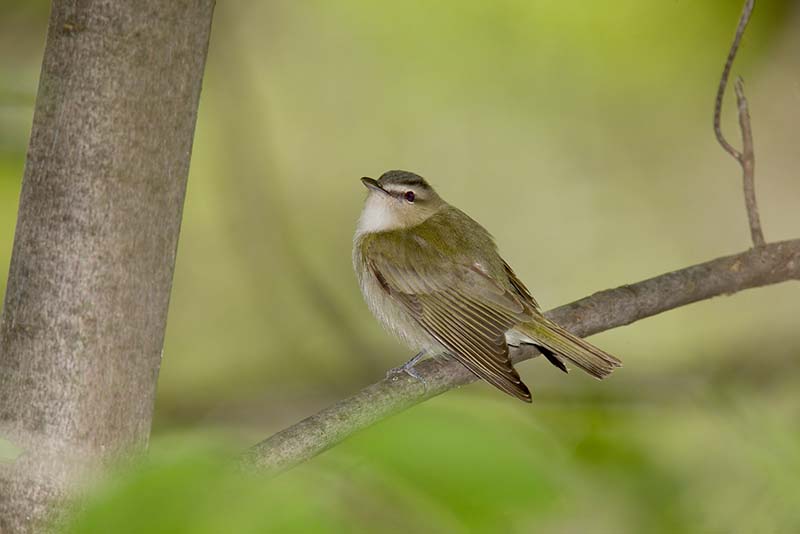 The red-eyed vireo prefers to breed in deciduous or mixed forest.